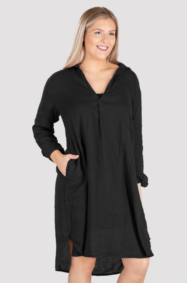 Chalet-Ceci-Womens-Clothing-Melina-Dress-Tunic-Crinkle-Bamboo-Mineral-Hash-Print-Black