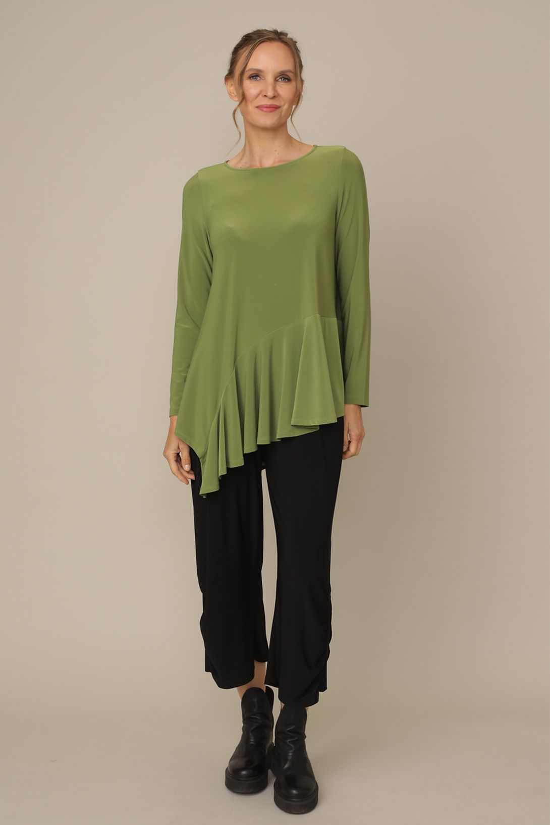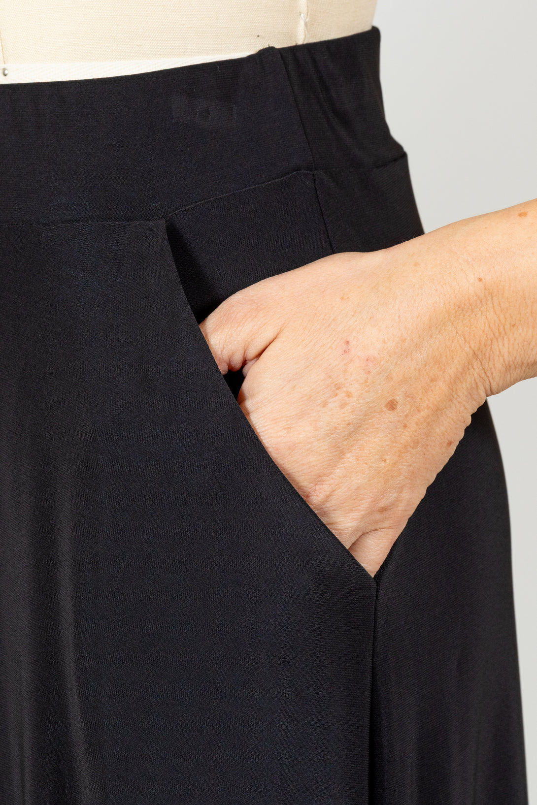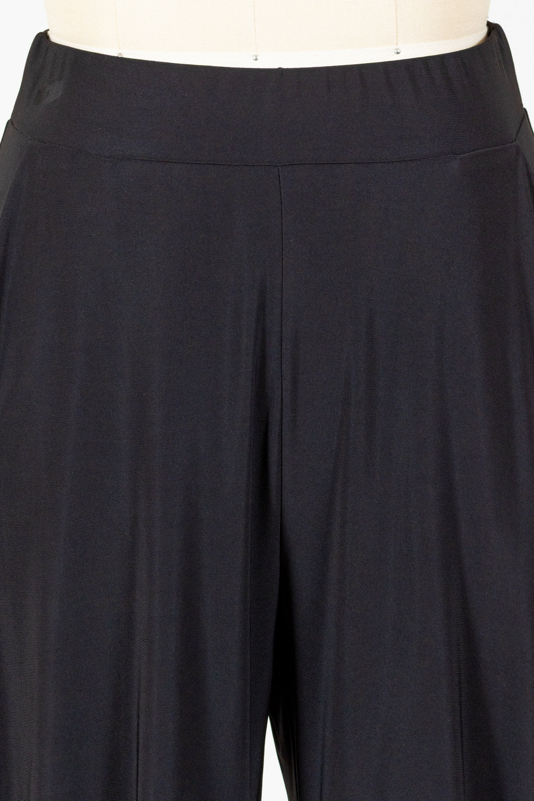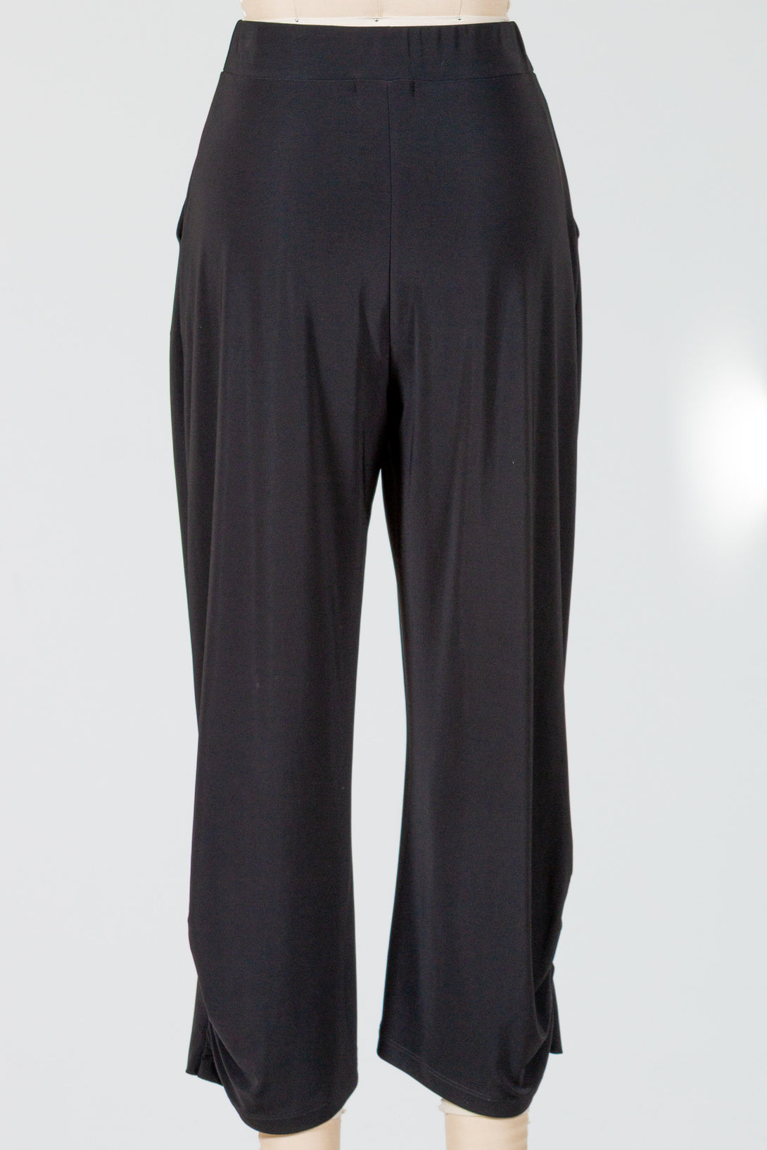 The Nancy Pant from Chalet is a silky, wardrobe-essential piece designed for comfort and effortless travel. Crafted from a matte jersey knit with a slippery-smooth feel and excellent drape, these cropped pants feature a flat elastic waistband and side angled pockets for easy wear. The full, lantern-shaped legs taper slightly at the ankle, accented by cinched seam and draped-tuck details for added style and movement. Versatile and easy to pair, the Nancy Pant complements almost any top for a polished, chic look.