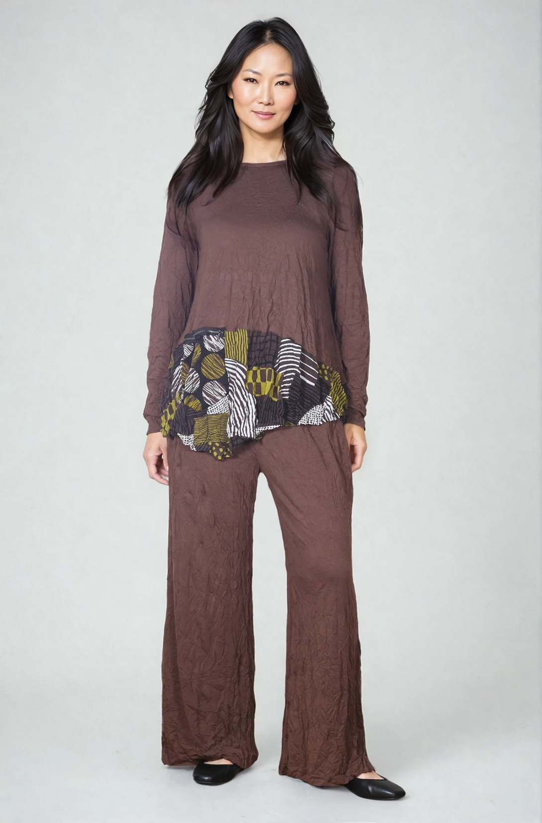 Chalet-Ceci-Womens-Clothing-Tunia-Top-Shirt-Crewneck-Crinkle-Bamboo-Clay-Brown