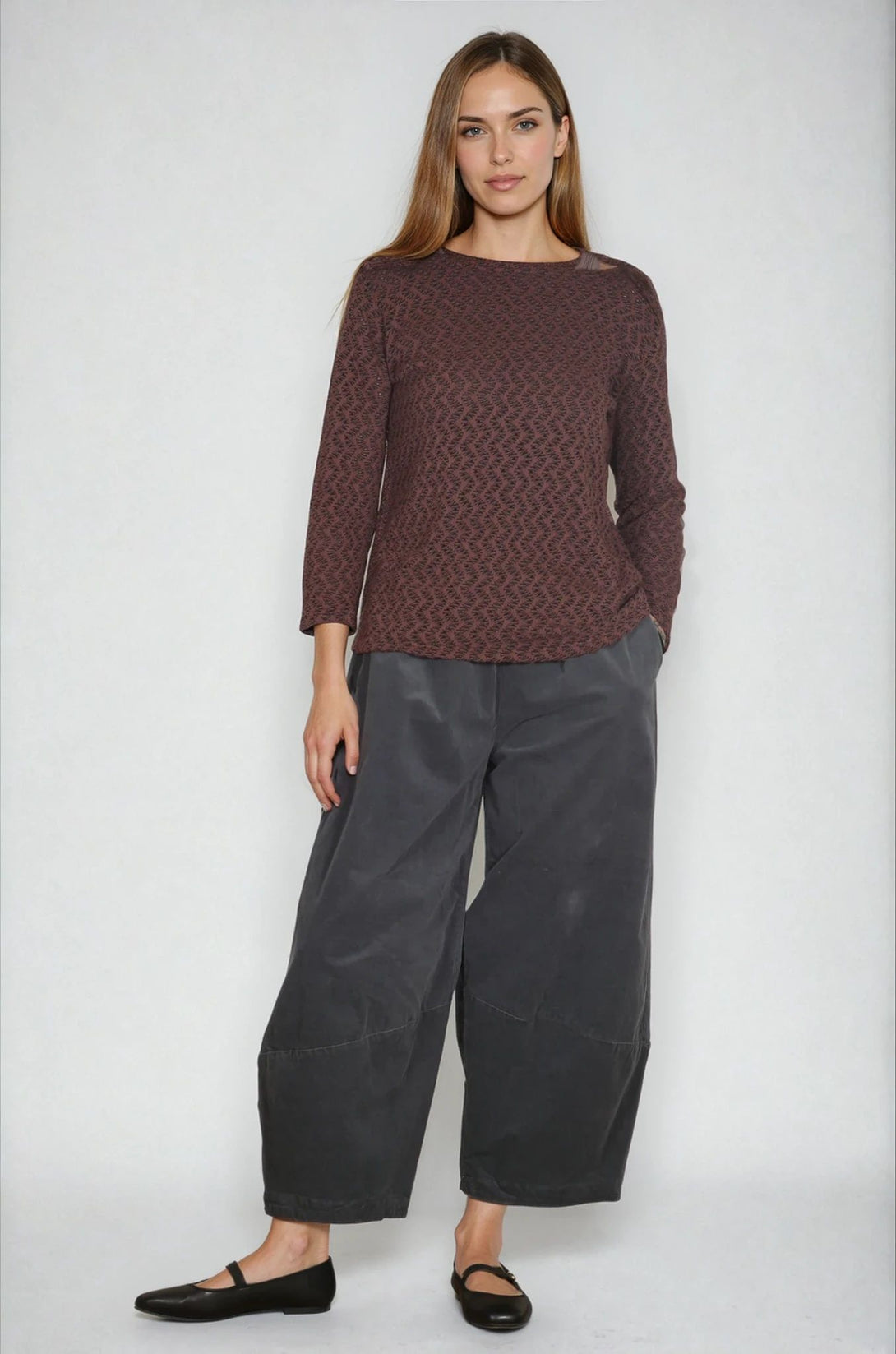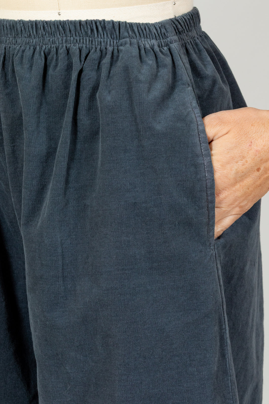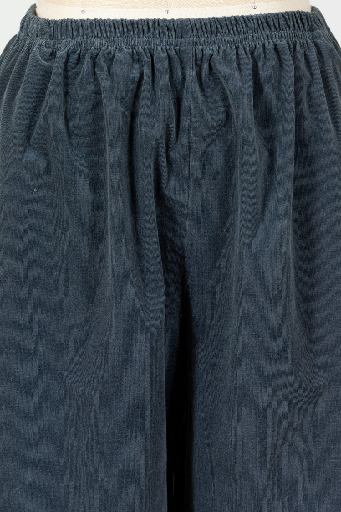 Crafted from luxe mini corduroy in a smoky grey hue, the Lantern Pant by Cut Loose offers a chic, wide-legged silhouette with tapered ankles for a modern, flattering fit. Designed with an elastic waistband for effortless comfort, these pants feature angled seaming at the lower legs, creating a subtle lantern shape at the ankles. Invisible on-seam side pockets and a cropped length make this versatile piece perfect for dressing up or down, while the lightweight fabric ensures all-day ease and style.