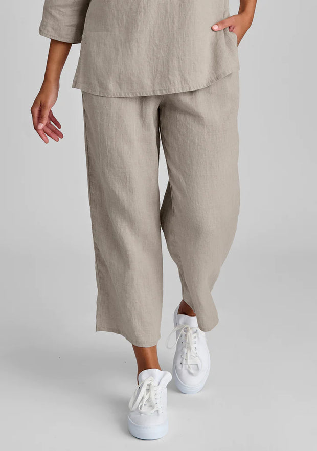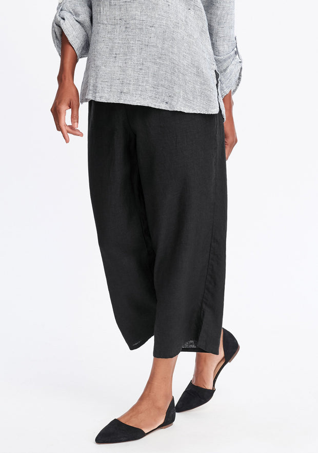 Flax linen is best when worn slightly loose, to be shapely but not fitted. We encourage you, both for longevity of your favorite styles and our intended design, to embrace the generous cut of our clothing.