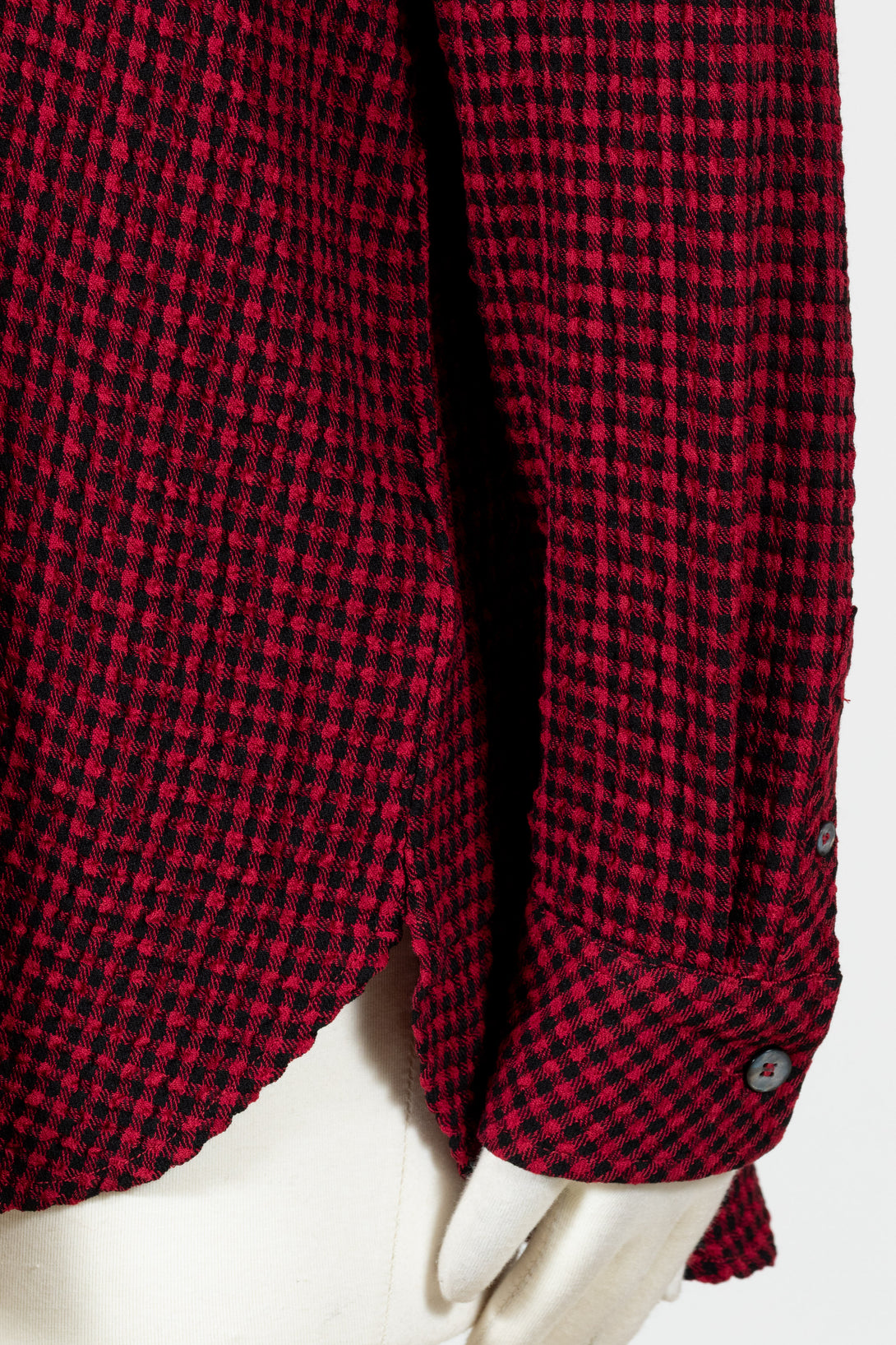 The Habitat Girl Gone Plaid Boyfriend Pocket Shirt is crafted from soft, crinkled check fabric with a touch of stretch for effortless comfort and movement. A modern twist on a fall classic, it features contrasting plaid accents on the breast pocket and down the button placket. Designed with a longer length, roomy fit, and high low curved shirt hem that falls over the hips. Versatile enough to wear buttoned as a shirt or open as a lightweight jacket—making it the perfect festive piece for layering all season long.