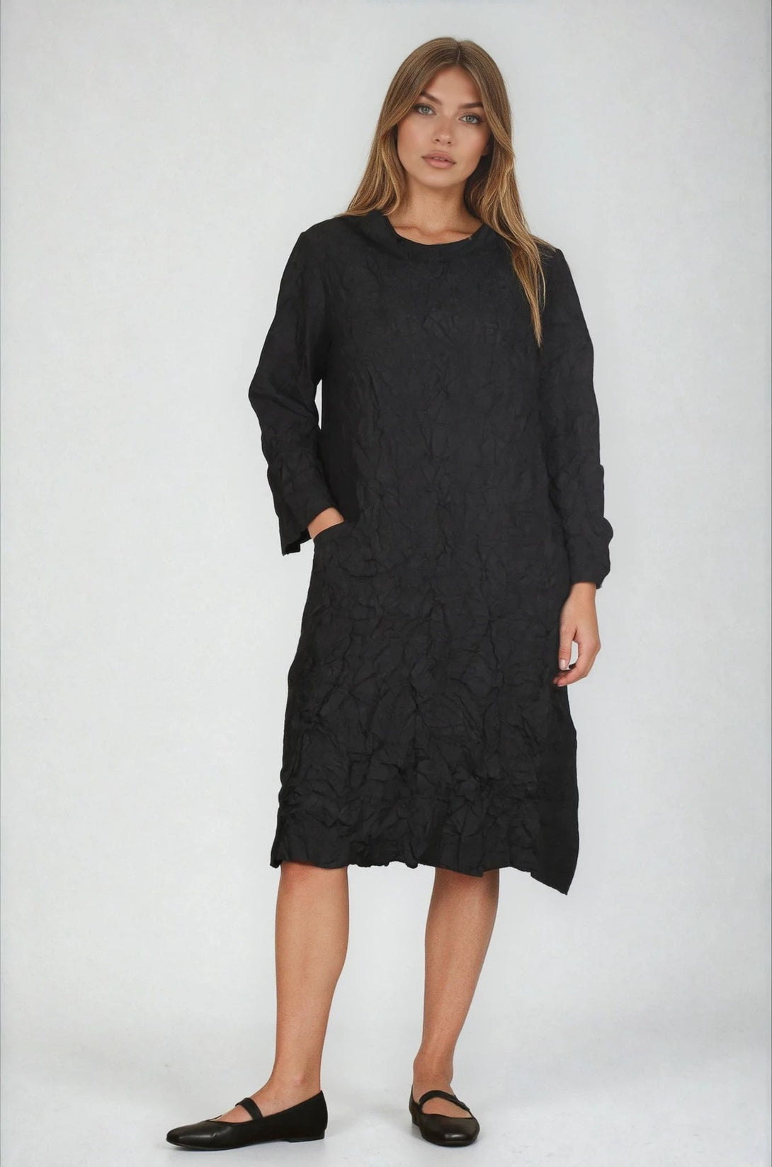 Part of Liv's Crimped Crepe de Chine collection, the Easy Cowl Dress by Olivia by Habitat features a soft to the touch, crushed texture that travels effortlessly and looks polished from day to night. Designed with 3/4 sleeves and an interior wire in the cowl neckline for endless adjustability, this dress also includes two patch pockets for functionality. Falling below the knee on most, its crinkled texture makes it an elegant, eye-catching choice, perfect for work and seamlessly transitioning to an evening out.